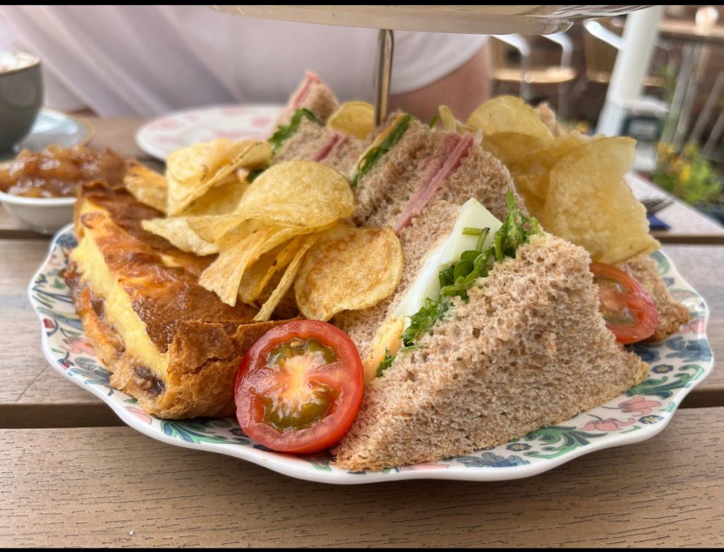 Included are freshly made sandwiches, a savoury pastry, crisps, homemade scones with jam & clotted cream and a choice of cake from our display and a tea or coffee. You can even upgrade and enjoy a glass of Prosecco!